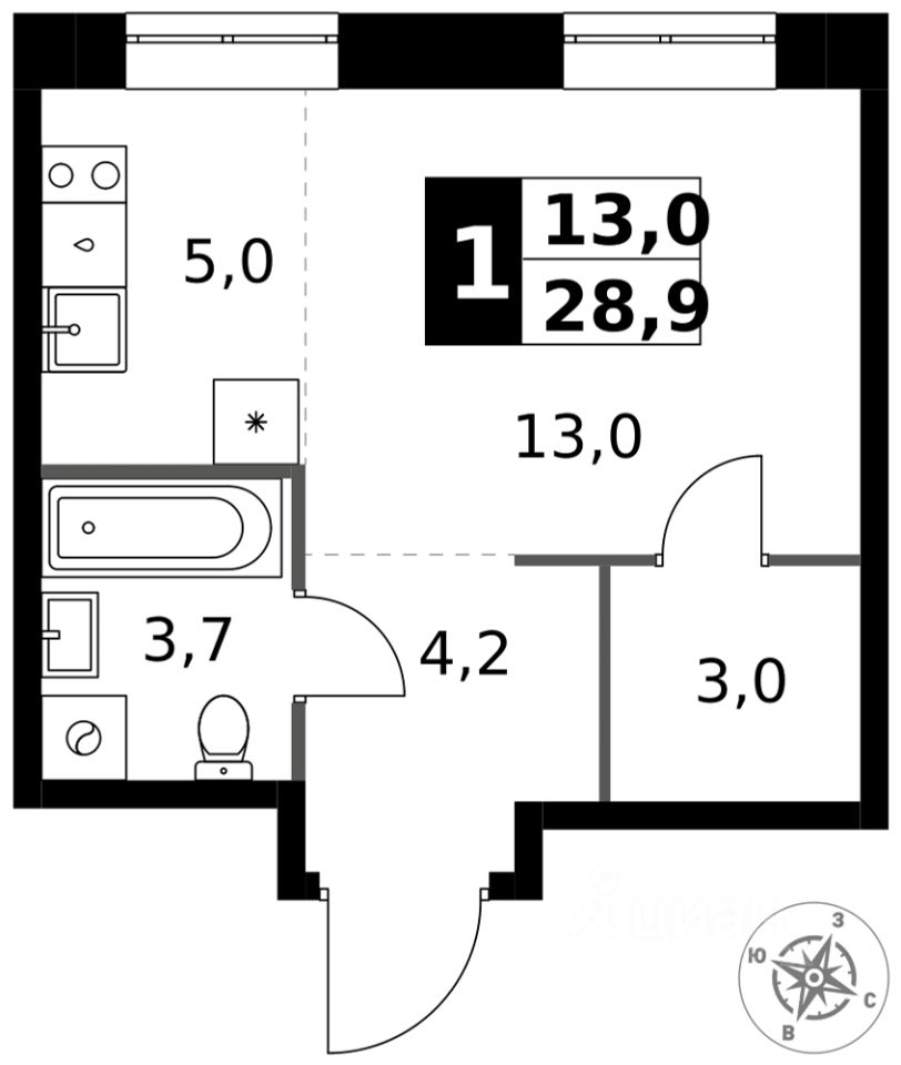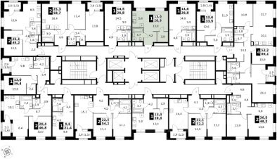 Продаётся квартира-студия номер 814 общей площадью 28.9 кв.м. на 28-м этаже 32 этажного здания. Без отделки.