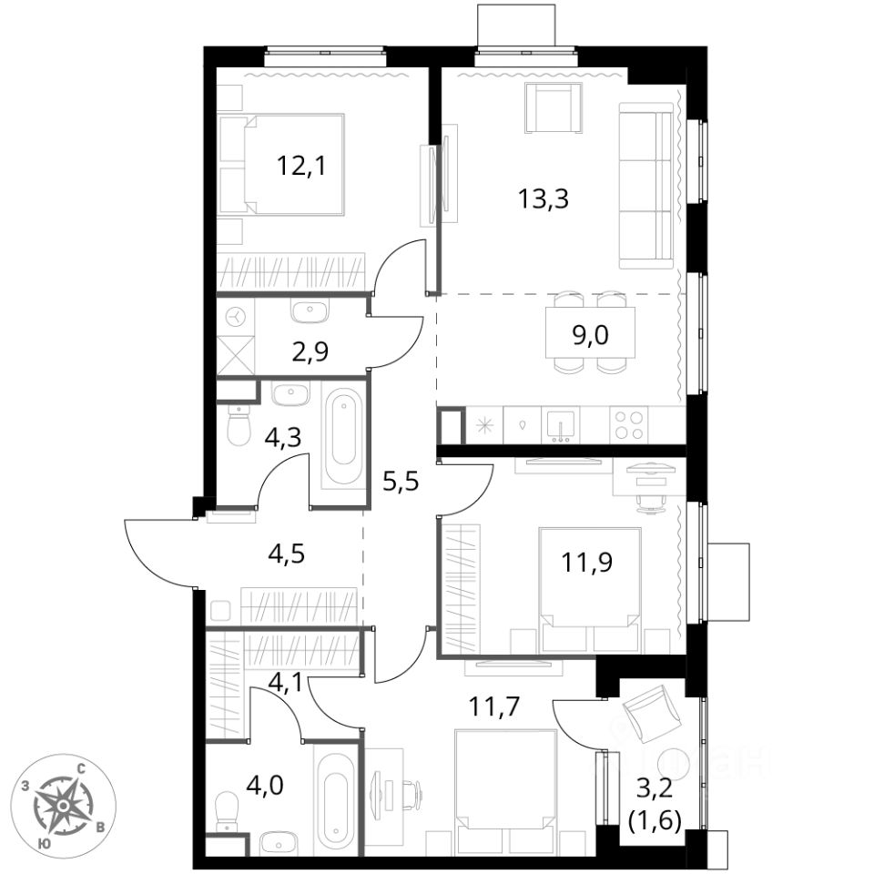 - Гибкая планировка - создайте пространство по своему вкусу.