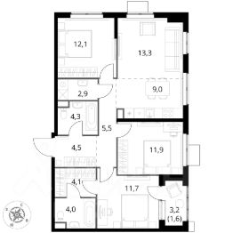 Продаётся 4-к квартира номер 571 общей площадью 84.9 кв.м. на 4-м этаже 15 этажного здания. Отделка Whitebox. Цена с учётом скидки.