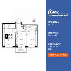 Продаётся 2-к квартира номер 274 общей площадью 55.7 кв.м. на 24-м этаже 25 этажного здания. Чистовая отделка. Цена с учётом скидки.