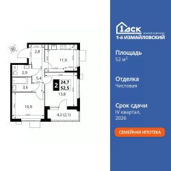 Продаётся 2-к квартира номер 285 общей площадью 52.5 кв.м. на 25-м этаже 25 этажного здания. Чистовая отделка. Цена с учётом скидки.