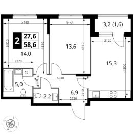Продаётся 2-к квартира номер 292 общей площадью 58.6 кв.м. на 2-м этаже 12 этажного здания. Отделка Whitebox. Цена с учётом скидки.