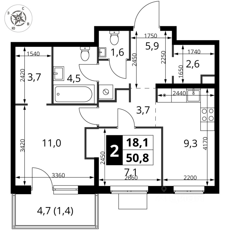 - Большой балкон - больше пространства для вашего отдыха.