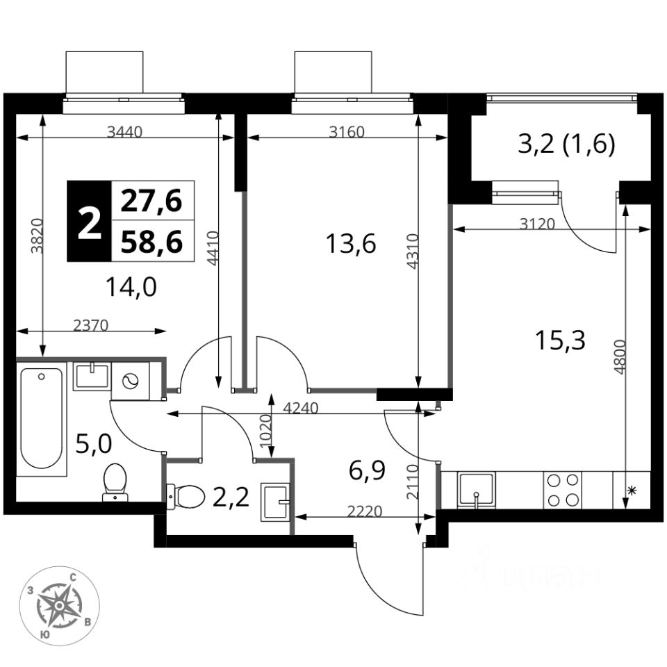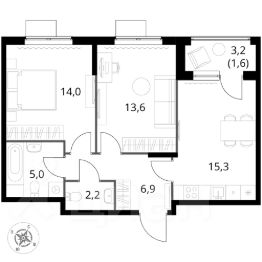 Продаётся 2-к квартира номер 372 общей площадью 58.6 кв.м. на 12-м этаже 12 этажного здания. Отделка Whitebox. Цена с учётом скидки.