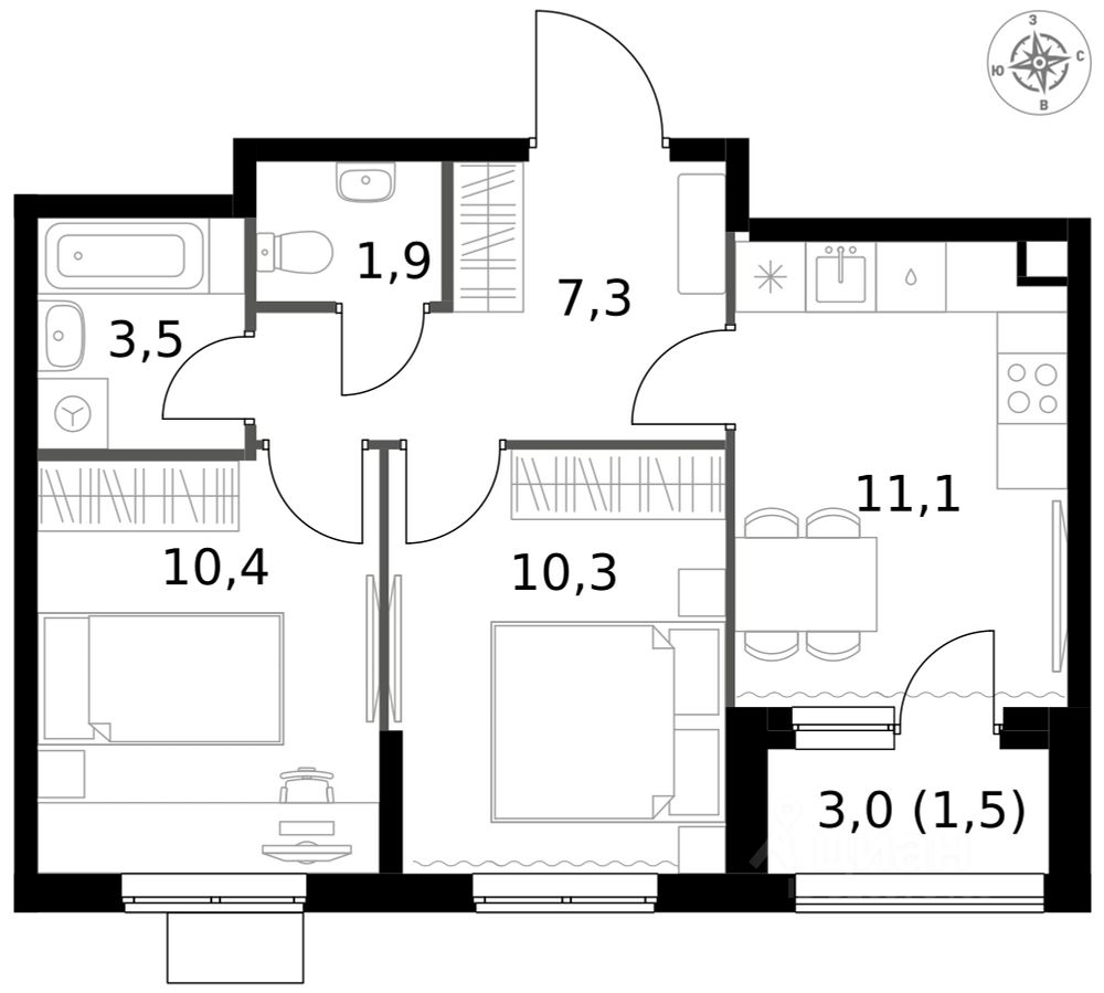 - Раздельный санузел - больше удобства для всех членов семьи.