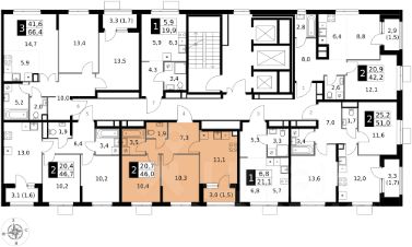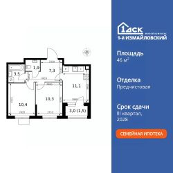 Продаётся 2-к квартира номер 251 общей площадью 46 кв.м. на 13-м этаже 25 этажного здания. Предчистовая отделка. Цена с учётом скидки.