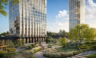 5) Роскошная внутренняя территория. Во дворе комплекса создан двухуровневый парк на 2 га, выполненный в стиле английского сада, в котором будут расти 650 деревьев и более 2000 кустарников, появится светлая березовая роща и тенистый хвойный лес.
