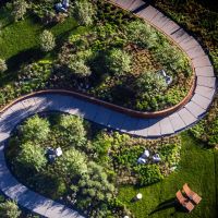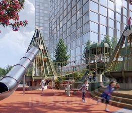 - Двухуровневый двор-парк 2 га с хвойным лесом и террасами