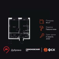 Продаётся 1-к квартира номер 83 общей площадью 40.7 кв.м. на 8-м этаже 27 этажного здания. Отделка Whitebox.