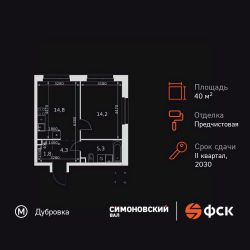 Продаётся 1-к квартира номер 168 общей площадью 40.4 кв.м. на 15-м этаже 27 этажного здания. Предчистовая отделка. Цена с учётом скидки.