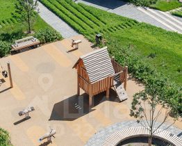 В проекте предусмотрена медленная зона для электросамокатов — с 7 утра до полуночи при въезде на территорию квартала скорость электросамокатов автоматически снижается до 15 км/ч. Артикул 890969 (Застройщик ООО Специализированный застройщик "ДРСУ-34")