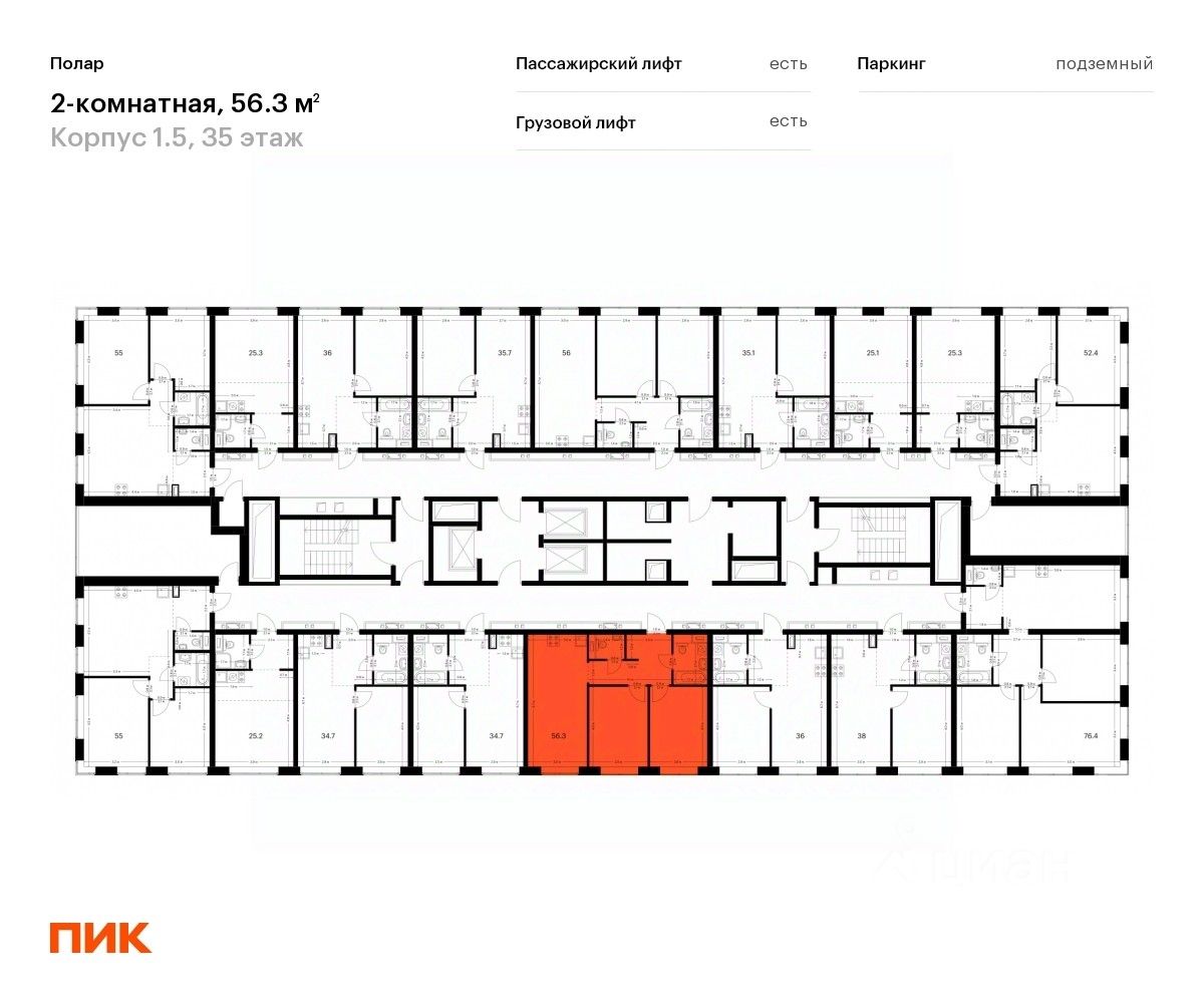 Продаётся 2-комн. квартира площадью 56,3 кв.м на 35 этаже 50 этажного дома (Корпус 1.5, Секция 2) проекта ПИК Полар. Светлый просторный подъезд на уровне земли, функциональная планировка, большие окна, предчистовая отделка.