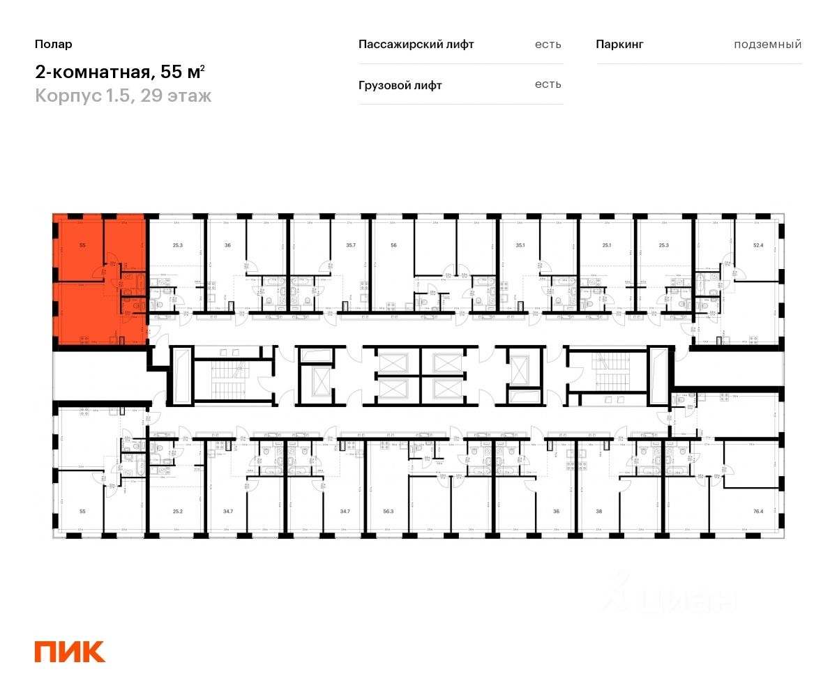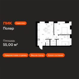Продаётся 2-комн. квартира площадью 55 кв.м на 29 этаже 50 этажного дома (Корпус 1.5, Секция 2) проекта ПИК Полар. Светлый просторный подъезд на уровне земли, функциональная планировка, большие окна, предчистовая отделка.