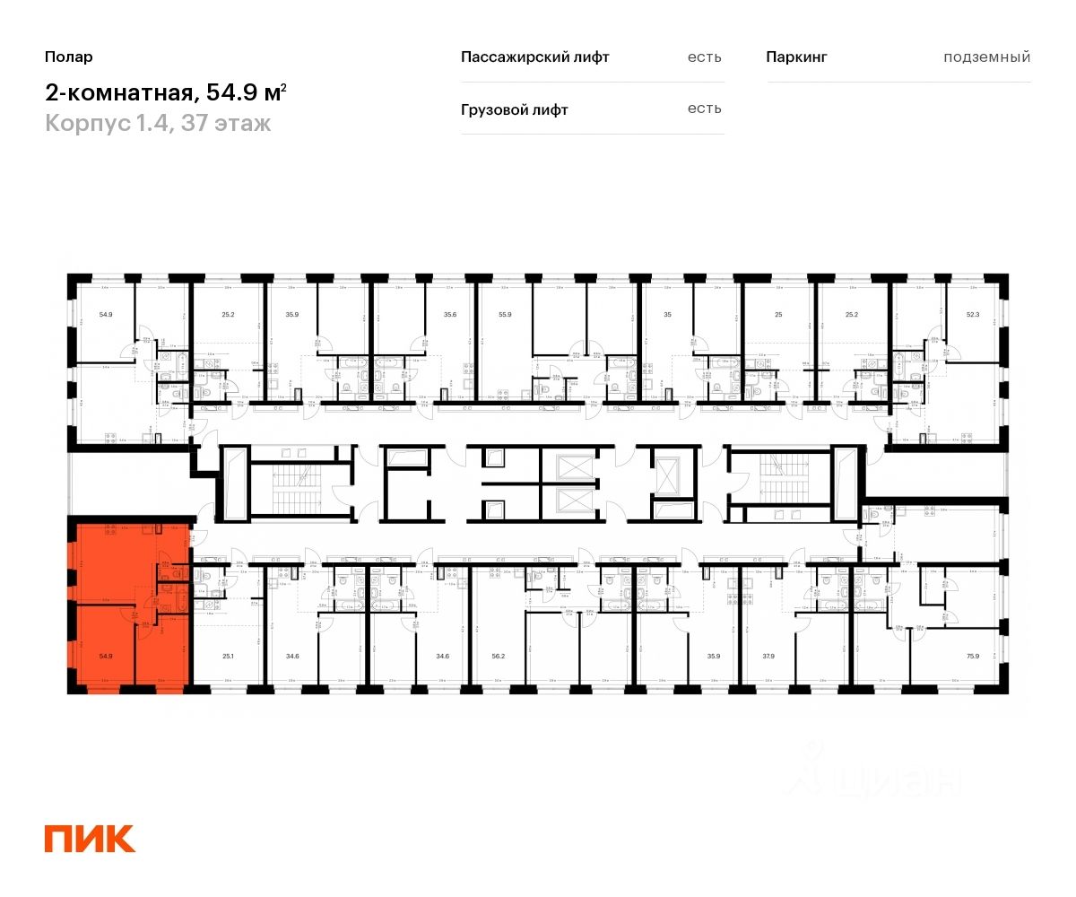 Продаётся 2-комн. квартира площадью 54,9 кв.м на 37 этаже 45 этажного дома (Корпус 1.4, Секция 1) проекта ПИК Полар. Светлый просторный подъезд на уровне земли, функциональная планировка, большие окна, c отделкой.