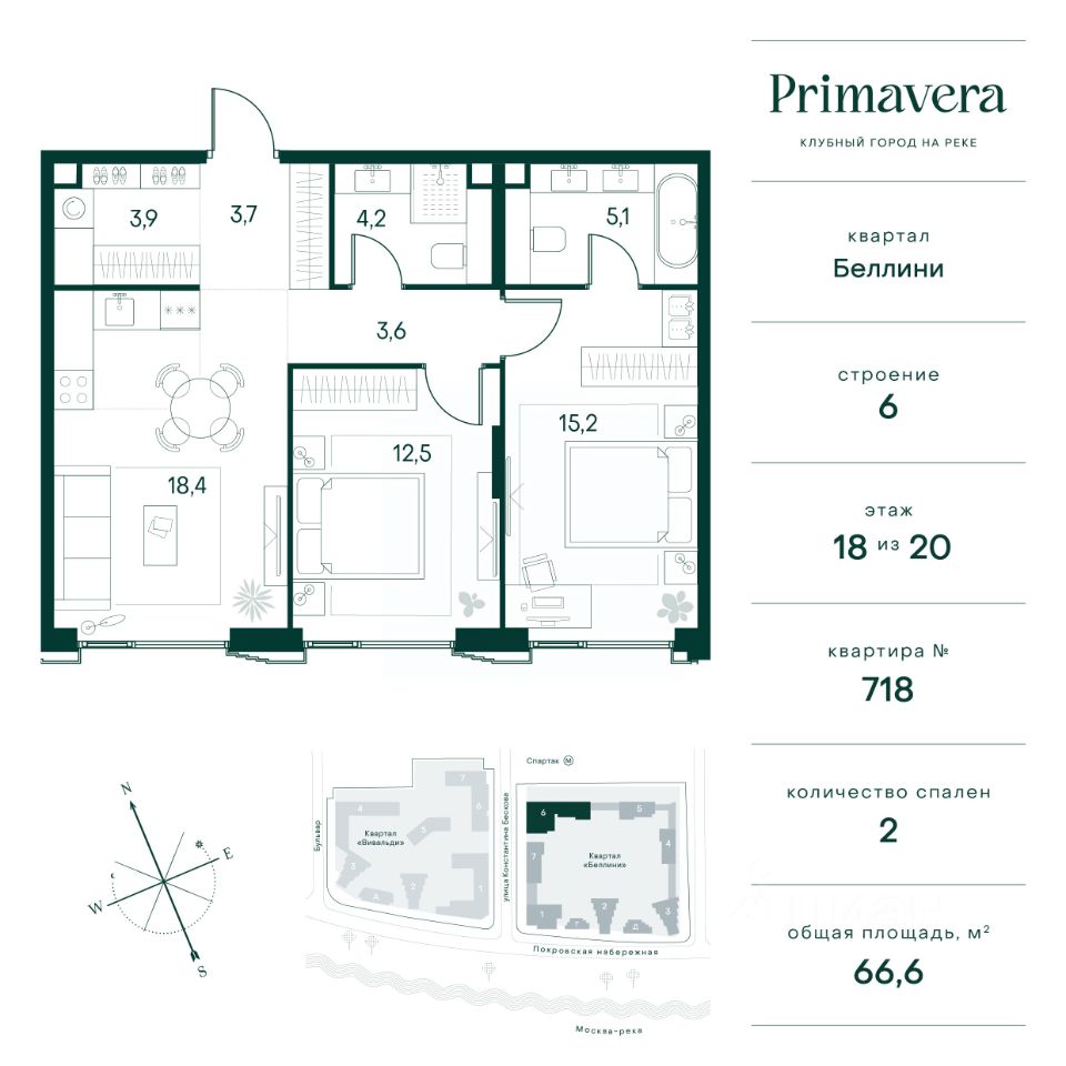 Клубный город на реке "Примавера" — это современный жилой комплекс премиум-класса, расположенный на первой береговой линии Москвы-реки в экологически чистом районе Покровское-Стрешнево. Под панорамными окнами квартир находится собственный экопарк с продуманной сетью прогулочных дорожек и современными детскими и спортивными площадками. За парком расположена набережная с собственным пляжем и зонами для отдыха. Клубный город на реке "Примавера" предлагает широкий выбор планировок для различных жизненных сценариев: от просторных однокомнатных квартир до пентхаусов и жилых помещений с террасами и патио. Выберите из 120 вариантов эргономичных планировок стандартного и евроформата. Из каждой квартиры открываются красивые виды на реку с углом обзора в 270 градусов. Дизайнерские лобби предлагают панорамный обзор на благоустроенный двор. Высокие потолки в 6 метров и качественная отделка создают атмосферу, схожую с пятизвездочными отелями. В "Примавера" есть всё необходимое для комфортной жизни в мегаполисе: • Образование для детей в шаговой доступности: 4 школы, 8 детских садов и развивающие центры с кружками и секциями. • Удобства на расстоянии приятной прогулки: супермаркеты, кафе, рестораны с верандами, салоны красоты, аптеки и многофункциональный центр для шоппинга и развлечений. • Умный дом: автоматизированное бесконтактное управление основными системами доступа и безопасности через мобильное приложение. Клубный город на реке "Примавера" выгодно сочетает комфорт городской жизни с близостью к природе. Живите в месте, где все создано для вашего удобства!