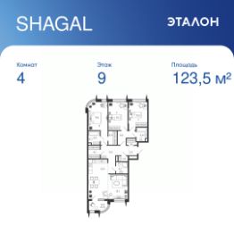 Общая площадь квартиры — 123.5 кв. м, этаж 9 из 15.