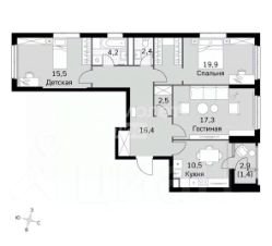 Спальни - 19,9+15,5 м2