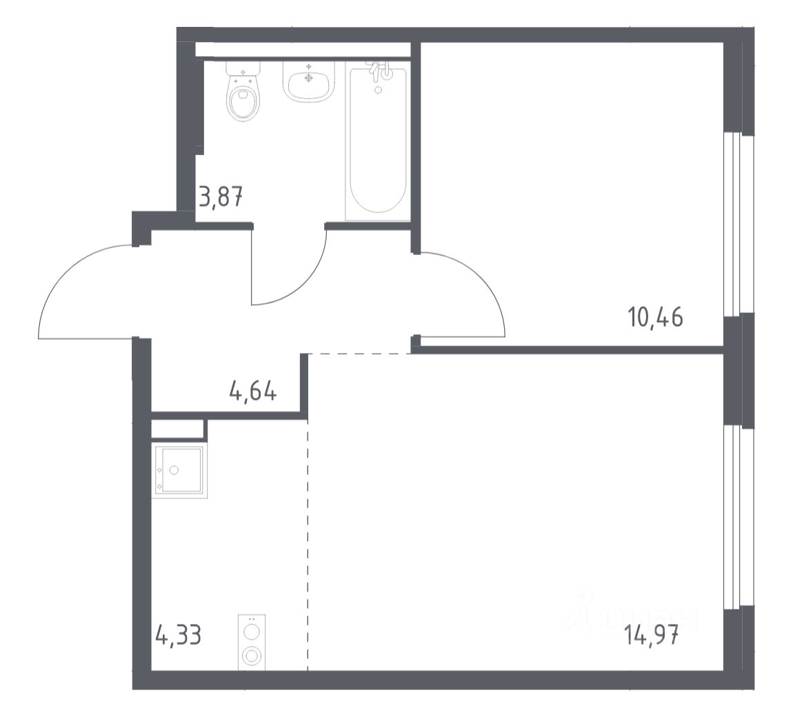 Строим кварталы для жизни с заботой о будущем. Предлагается 1-комнатная квартира комфорт-класса площадью 38,9 кв.м в корпусе 23 на 9-м этаже, в жилом комплексе "Новое Внуково".