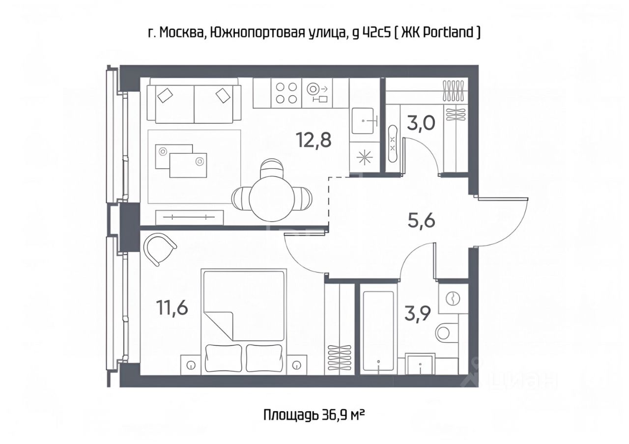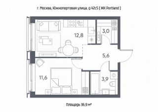 Арт. 131310000 Однокомнатая квартира с предчистовой отделкой. Расположена в 1-ом корпусе жилого комплекса бизнес-класса Portland.