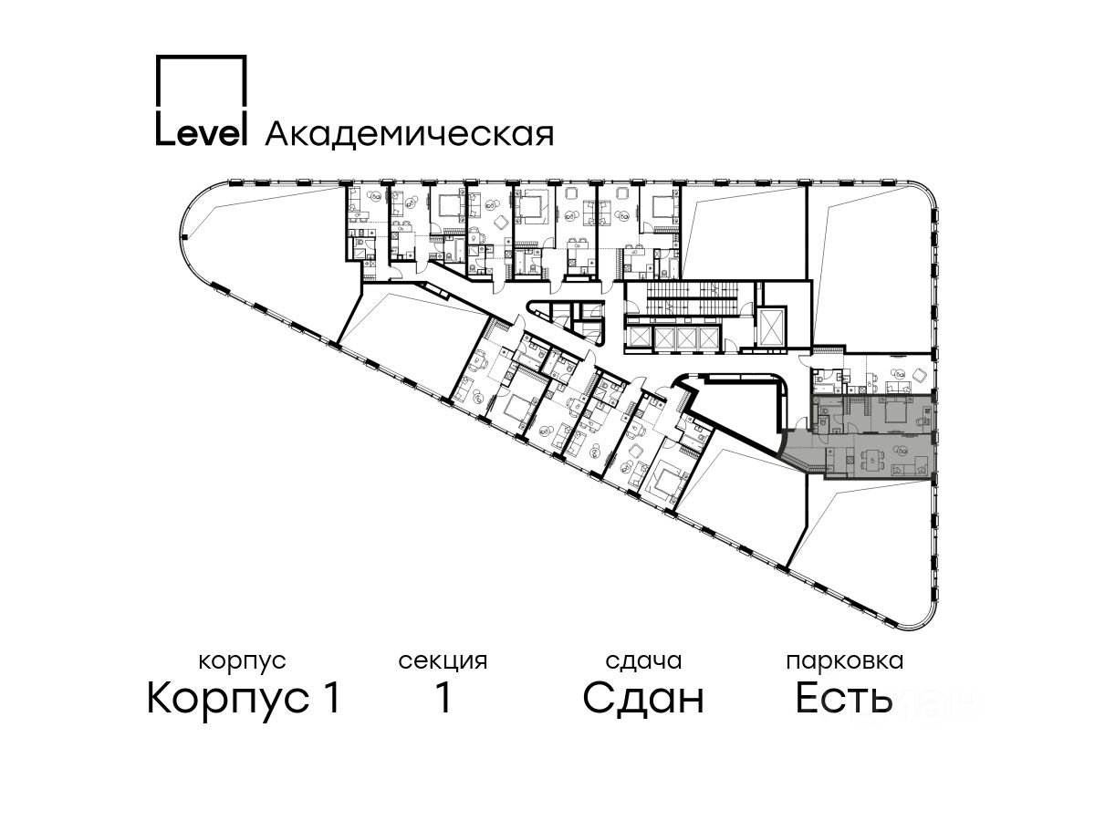 В Академическом районе продаётся 2-комнатная квартира площадью 63.70 кв.м без отделки. Квартира расположена на 18-м этаже 19-этажного жилого комплекса бизнес-класса Левел Академическая (компания Level Group).