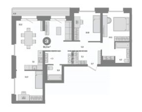 3 уютные спальни - 11.2 м², 14.1 м², 10.6 м²