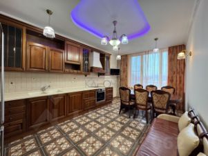 Интерьер оформлен с вниманием к деталям: использован качественный дизайнерский ремонт с применением европейских материалов. Натуральная паркетная доска на полу придаёт помещению уют и благородство. В кухонных и санитарных зонах уложена плитка с подогревом. Кухня укомплектована техникой Bosch (электроплита, духовой шкаф, вытяжка, посудомоечная машина), установлен современный холодильник side by side. В квартире никто и никогда не проживал, поэтому состояния "после нового ремонта".