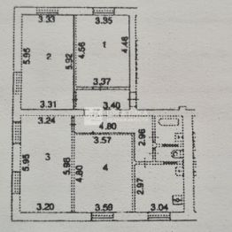 Общая площадь 98,3 кв. м, из которых 71,2 кв. м — жилая площадь. Квартира расположена на втором этаже. В квартире четыре изолированные комнаты (19.7+19.2+17.2+15.1) с окнами, выходящими на улицу и во двор. Удобная планировка. Кухня 9 кв. м, холл-коридор. Высота потолков — 2,8 м. Косметический ремонт, можно сразу заселиться и жить.