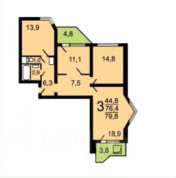 2 мебелированные комнаты 14.8 и 18.9 м2. + еще одна утепленная лоджия с теплым полом.