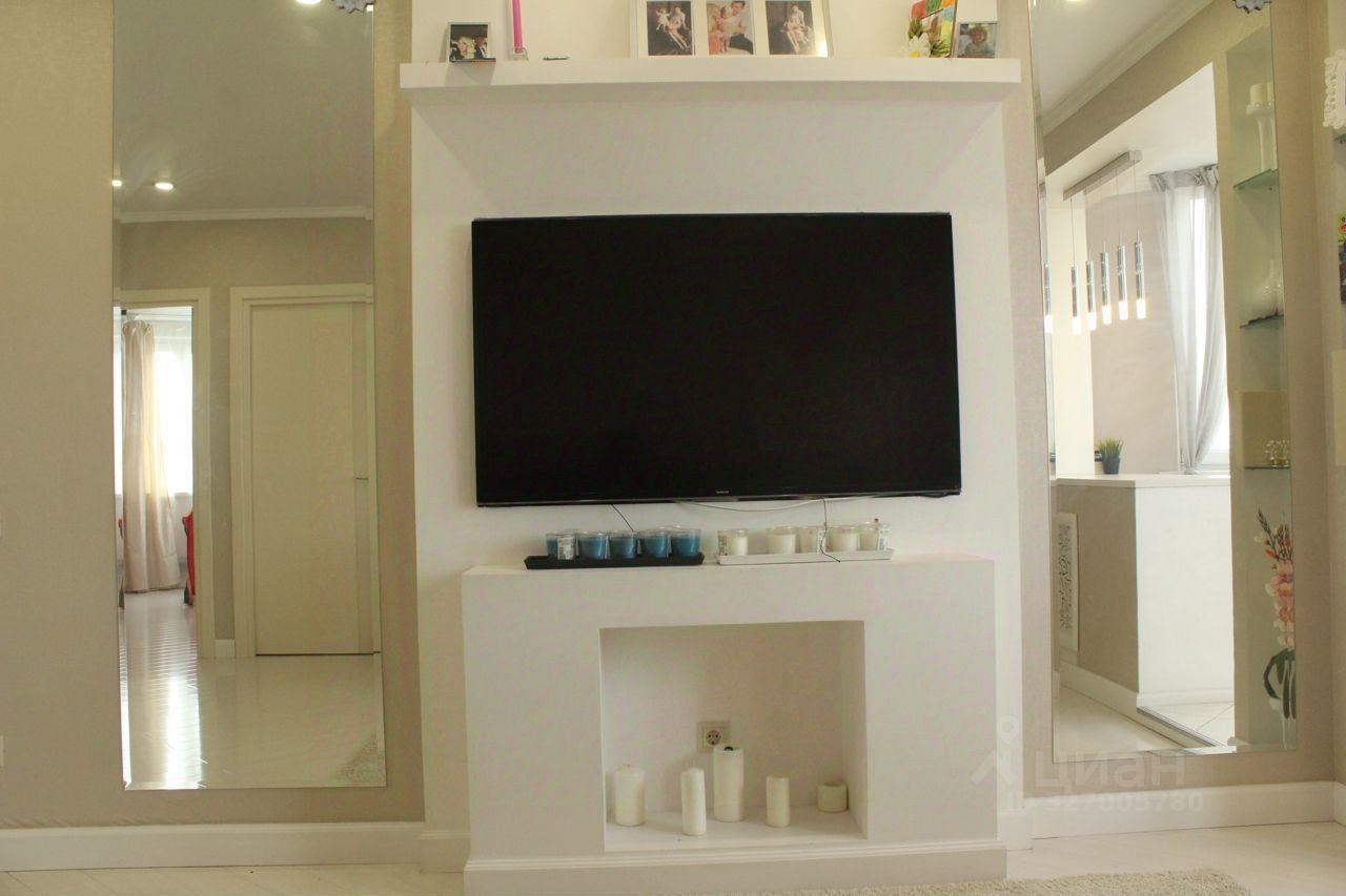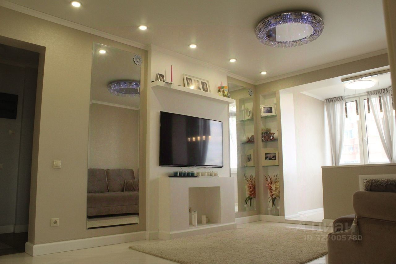 Просторная гостиная 19 м2 + утепленная лоджия с теплым полом, ниши со встроенным большим телевизором, фальшкамин.