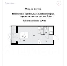 11 этаж, 23,6 кв.м. (с учетом коэффициента, общая 25 кв.м.), высота потолков 2,95 м., без отделки.