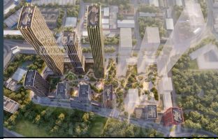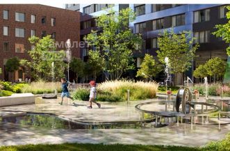 Внутренняя инфраструктура: Для отдыха жителей в каждом корпусе предусмотрено лобби, оснащенное местами для отдыха, гостевыми санузлами и лапомойками, а в отдельных корпусах - камином. За счёт больших окон и высоких потолков пространства будут наполнены воздухом и светом. На первых этажах жилого комплекса откроются магазины, салоны красоты, фитнес-центр. Для детей строятся собственные детский сад и школа. Благоустройство: Внутренний двор комплекса разработан совместно с бюро GAFA. Основная идея - создать аналог Центрального парка в Нью-Йорке, гармонично сочетая высотные здания и большое изолированное парковое пространство. Вся площадь двора-парка будет огорожена и составит более 2 га, из которых 45% - озеленение. Одним из самых важных ландшафтных элементов здесь станет небольшая речка, наполняющаяся во время дождя. Вокруг неё появится сеть из островов, внутри которых расположатся тематические зоны спорта и отдыха.