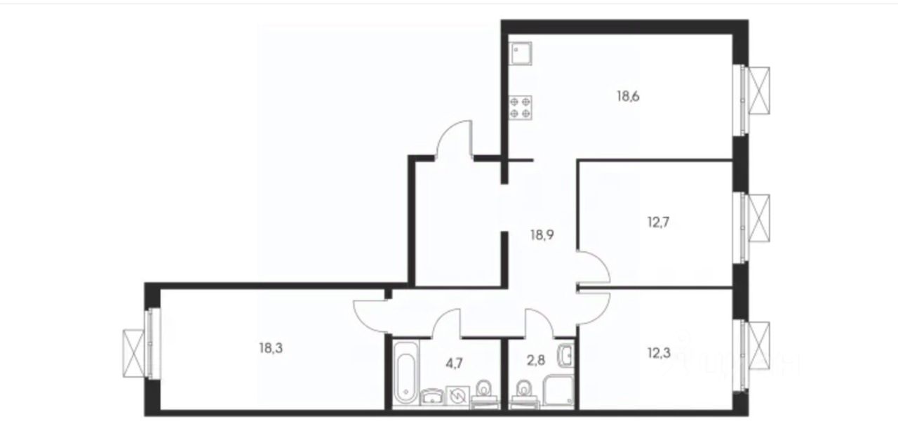 Мебель, встроенная техника и кухня ИКЕА остаются новому владельцу. В квартире имеется три спальни, два совмещенных санузла, оборудована гардеробная и другие объемные пространства для хранения. Окна выходят во двор и на тихую улицу, на которой расположена школа.
