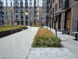В ЖК Вереск большой и комфортный внутренний благоустроенный двор-парк с ландшафтным дизайном с редкими растениями, клумбы и элементы декора из дорогой оригинальной кортеновской "вечной" стали , подземный паркинг, дизайнерская отделка фасада, современные входные группы и бесшумные надёжные лифты Otis, крыша эксплуатируемая, на ней оборудованы беседки для отдыха. В самом комплексе уже есть самая необходимая инфраструктура - ПВЗ, салон красоты, мини-маркет, уютный семейный ресторан. Детская площадка снаружи дома, рядом с лесом, но огорожена с доступом по ключу. А по соседству в ЖК Хорошевский современная школа One! International School и много других необходимых объектов для комфортной жизни.
