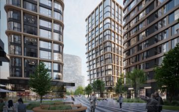 Внутренний двор 1,5 га функциональное и безопасное пространство для игр, работы и занятий спортом. Пешеходный променад для прогулок. Дома переменной этажности. Есть подземный паркинг.