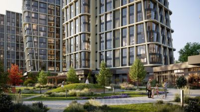 Внутренний двор 1,5 га функциональное и безопасное пространство для игр, работы и занятий спортом. Пешеходный променад для прогулок. Дома переменной этажности. Есть подземный паркинг.