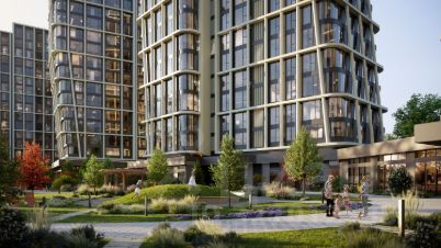 Внутренний двор 1,5 га функциональное и безопасное пространство для игр, работы и занятий спортом. Пешеходный променад для прогулок. Дома переменной этажности. Есть подземный паркинг.