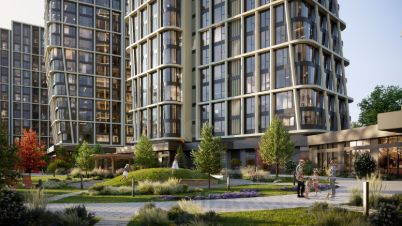 Внутренний двор 1,5 га функциональное и безопасное пространство для игр, работы и занятий спортом. Пешеходный променад для прогулок. Дома переменной этажности. Есть подземный паркинг.