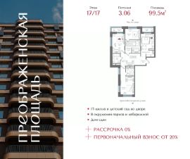 Квартира на 17 этаже в жилом комплексе премиум-класса "Преображенская площадь". Общая площадь: 99.5 кв.м.