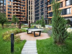 Внутренний двор 1,5 га функциональное и безопасное пространство для игр, работы и занятий спортом. Пешеходный променад для прогулок. Дома переменной этажности. Есть подземный паркинг.
