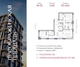 Квартира на 10 этаже в жилом комплексе премиум-класса "Преображенская площадь". Общая площадь: 115.45 кв.м.