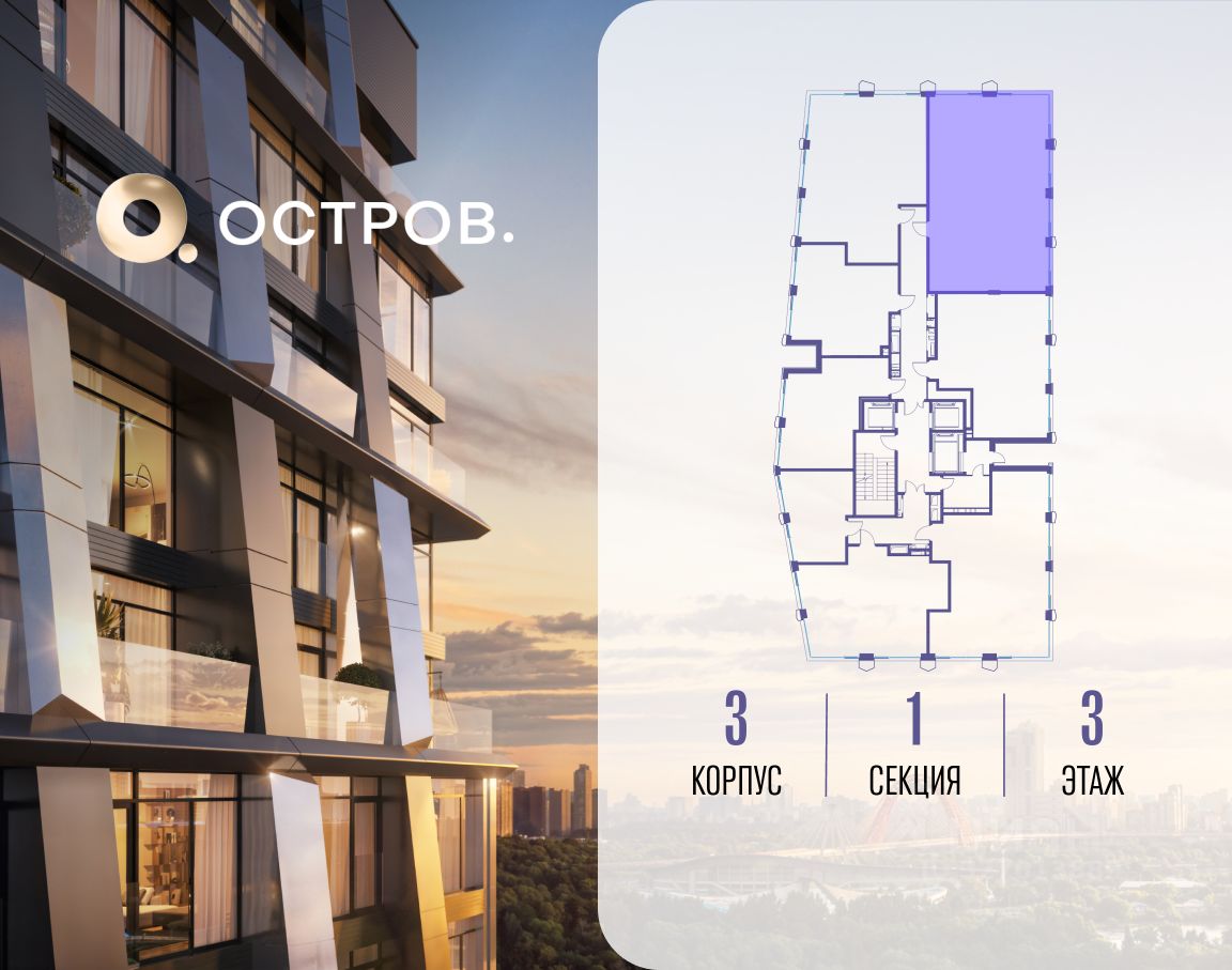 ОСТРОВ.12.1 - часть жилого комплекса на западе Москвы, в 15 минутах езды от центра. Это настоящий заповедник посреди большого города, в окружении реки и 650 га заповедников. Здесь все необходимое находится по соседству: от детского сада до супермаркета, от фитнес-зала до серфинг-центра. На территории созданы все условия для отдыха и общения: клубная инфраструктура в домах и дворы-парки, набережные и променады, маршруты для спортсменов, детей и возрастных жителей. В нескольких минутах ходьбы расположена станция метро "Мнёвники" БКЛ. На автомобиле - 10 минут до Москва-Сити и 15 минут до Садового кольца.