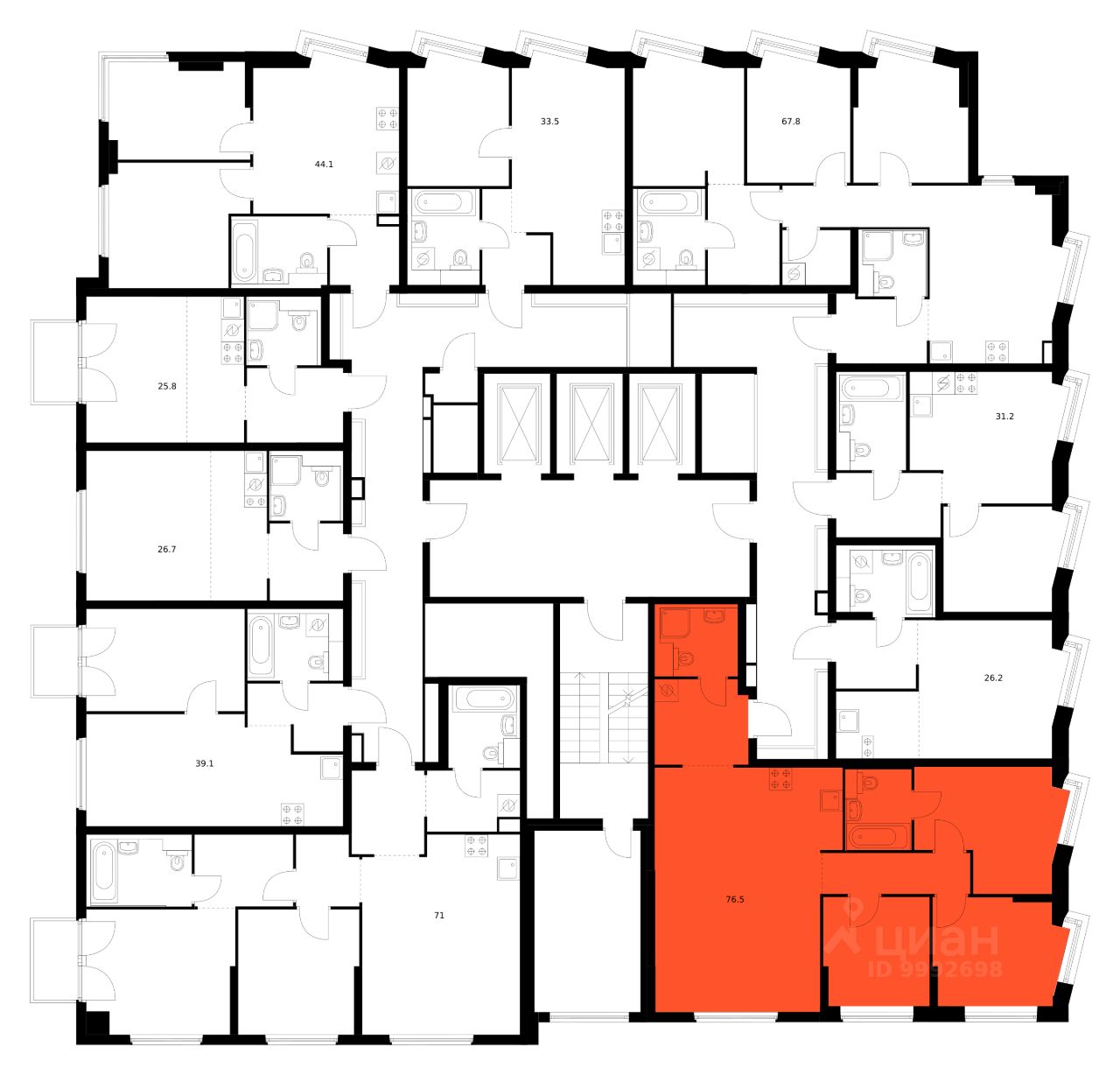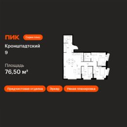 Продаётся 3-комн. квартира площадью 76,5 кв.м на 12 этаже 12 этажного дома (Корпус 1.1.1, Секция 1) проекта ПИК Кронштадтский 9. Светлый просторный подъезд на уровне земли, функциональная планировка, большие окна, предчистовая отделка.