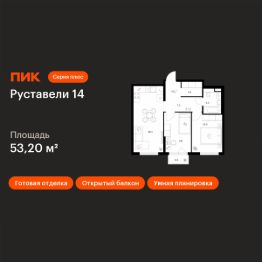 Продаётся 2-комн. квартира площадью 53,2 кв.м на 3 этаже 21 этажного дома (Корпус 3.7, Секция 3) проекта ПИК Руставели 14. Светлый просторный подъезд на уровне земли, функциональная планировка, большие окна, c отделкой.