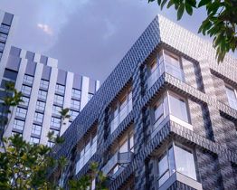 Проект состоит из зданий разной высоты и разной по характеру архитектуры. Узнаваемой доминантой квартала станет башня из стекла и металла, напоминающая водопад.