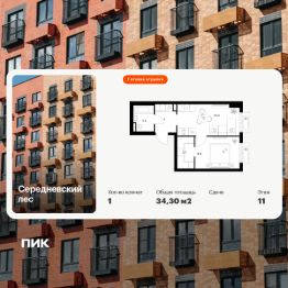 Продаётся 1-комн. квартира площадью 34,3 кв.м на 16 этаже 16 этажного дома (Корпус 2.1.5, Секция 5) проекта ПИК Середневский лес. Светлый просторный подъезд на уровне земли, функциональная планировка, большие окна, c отделкой.