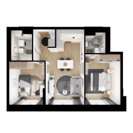 В корпусе 1.4 появится общественная терраса на 30-м этаже. Доступ сюда есть только у жителей, поэтому вы не встретите в этом пространстве посторонних людей. Здесь можно заниматься спортом, отдохнуть за чтением книги или создать собственный сад. А ещё отсюда открываются красивые виды на город.