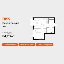 Продаётся 1-комн. квартира площадью 34,2 кв.м на 9 этаже 16 этажного дома (Корпус 2.1.4, Секция 4) проекта ПИК Середневский лес. Светлый просторный подъезд на уровне земли, функциональная планировка, большие окна, c отделкой.