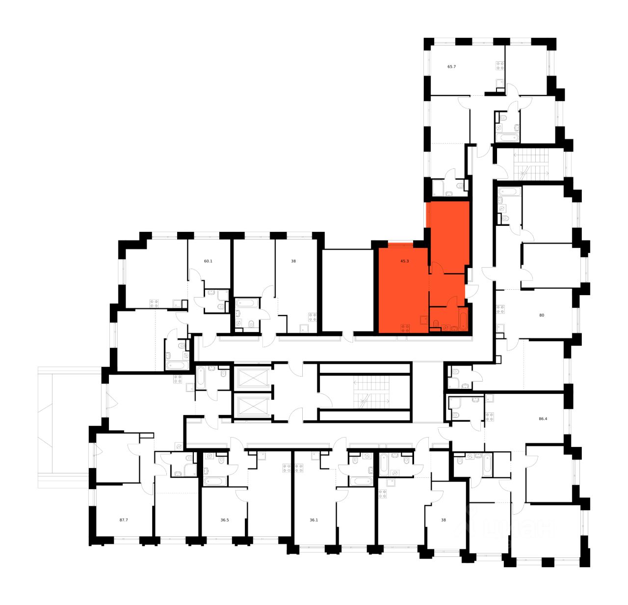Общая площадь45,3 м²