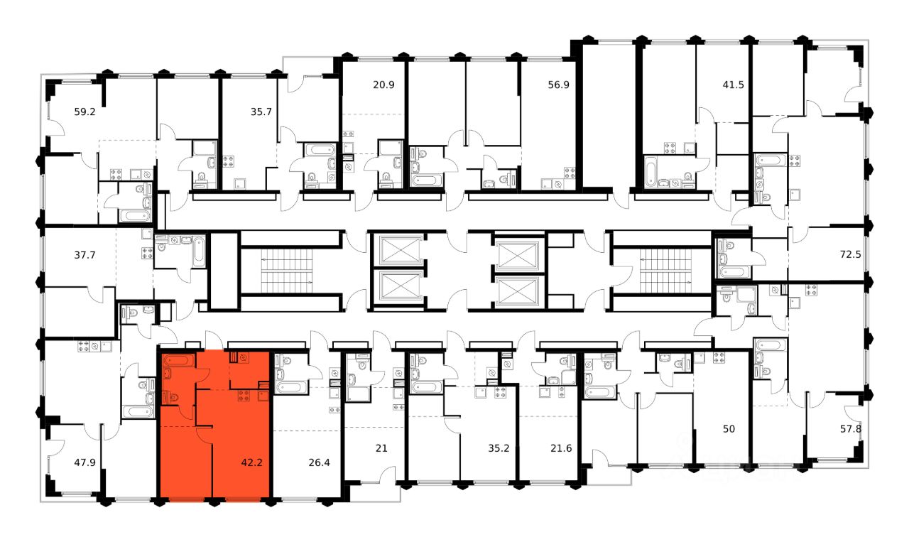 Продаётся 1-комн. квартира площадью 42,2 кв.м на 18 этаже 32 этажного дома (Корпус 22.1, Секция 1) проекта ПИК Бусиновский парк. Светлый просторный подъезд на уровне земли, функциональная планировка, большие окна, c отделкой.