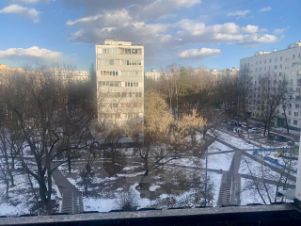 В квартире имеются 2 лоджии, большая лоджия размером в ширину комнаты и кухни.Выходы в лоджии из маленьких комнат.Окна у комнат выходят на 3 стороны дома, все с панорамными видами.